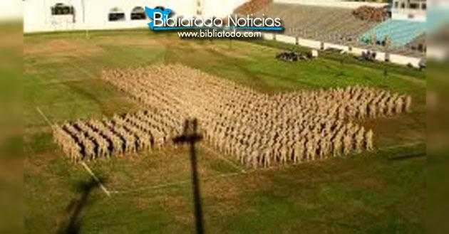 Una imagen registrada en una de esas ceremonias llamó la atención de los medios esta semana. Si se trata de una “cruz humana”, donde cientos de militares se organizaron para formar el diseño de la cruz, señalando que el ejército americano en su mayoría testimonia la fe en Jesucristo.