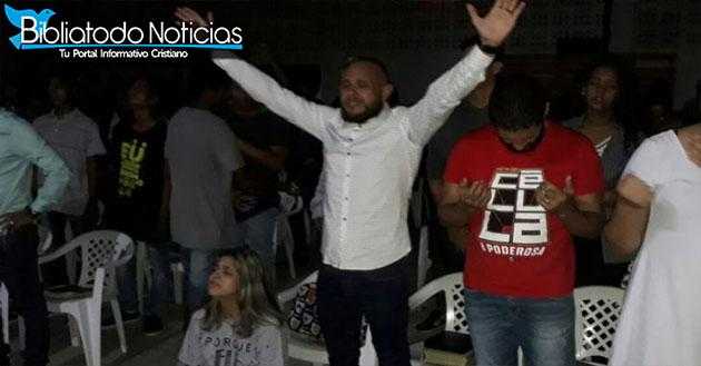 La pareja de pastores de la Iglesia Bautista Vida y Paz, de Linhares, realizó un culto el mismo día de la muerte de los niños,muestra al pastor diciendo a los miembros de la congregación “Dios va a restaurar nuestros corazones. Dios va a restaurar nuestros corazones “.